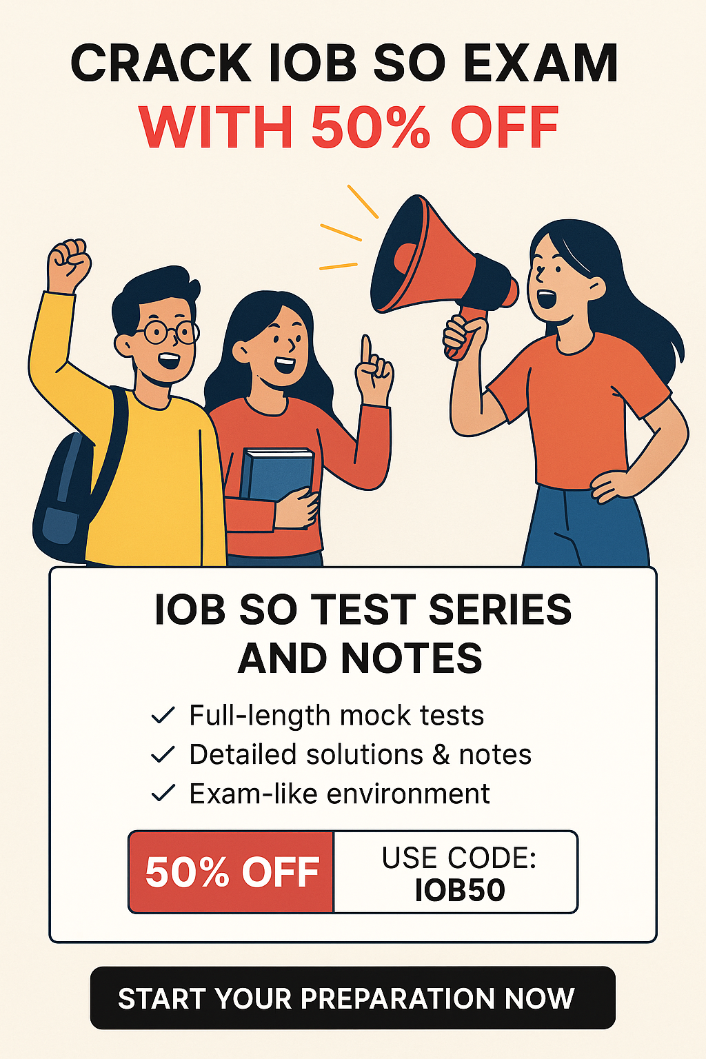 The competition for IOB SO recruitment is tough, given the limited vacancies and specialized roles. To crack it, candidates should follow a structured approach with IOB SO Test Series, IOB SO Notes, and IOB SO Professional Knowledge Notes.