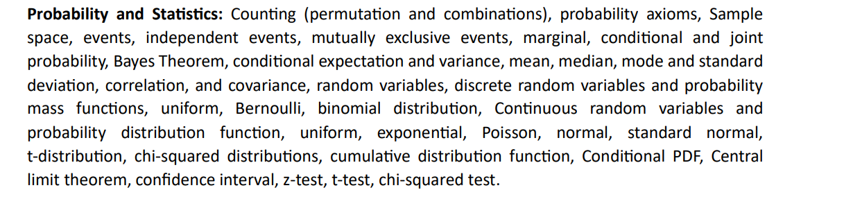 This course covers the concepts of probability and statistics specifically tailored for the GATE exam in Data Science and AI. It provides a comprehensive understanding of probability theory, statistical inference, and their applications in the field of data science and artificial intelligence. The course also includes practice exercises and solved examples to help students prepare effectively for the examination.